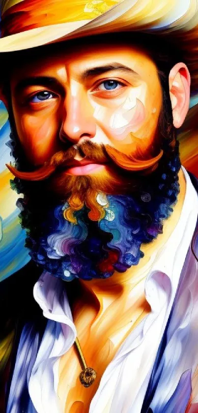 Explore this vibrant abstract artwork featuring a bearded gentleman, perfect as a unique mobile wallpaper
