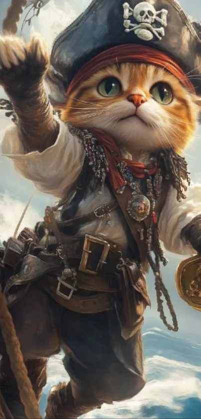 Set sail with a charming pirate cat on this adventurous mobile wallpaper, perfect for feline and sea lovers