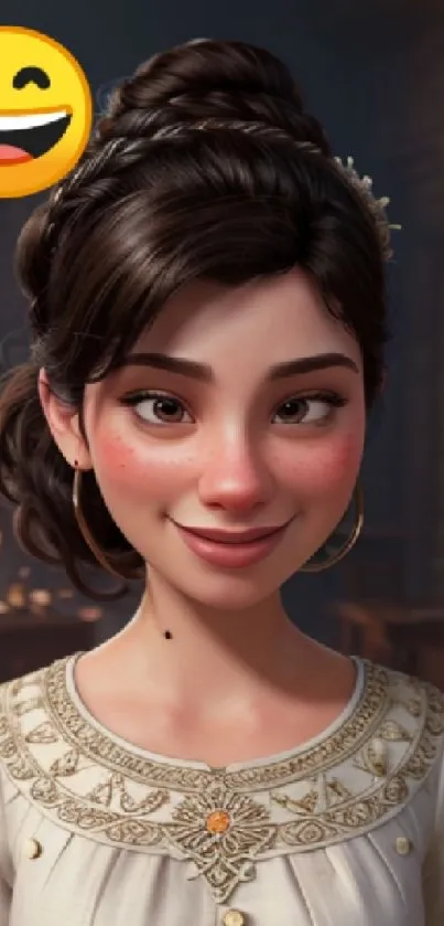 Charming animated character wallpaper featuring a smiling face with an emoji, perfect for vibrant phone screens