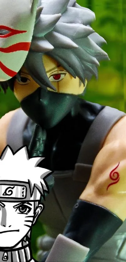 Vibrant anime wallpaper featuring a figurine with detailed design against a lush green background, perfect for fans of Japanese animation