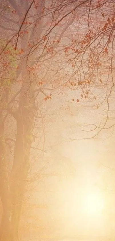 Discover serenity with this mobile wallpaper featuring a misty forest path illuminated by a warm autumn sunrise