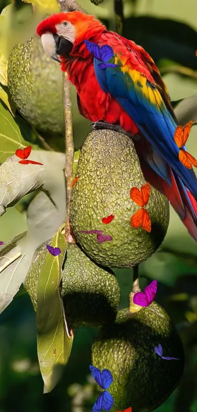 Immerse your screen with fresh avocados hanging on a branch, symbolizing nature and vitality. Perfect for nature lovers seeking a fresh and invigorating look for their phones