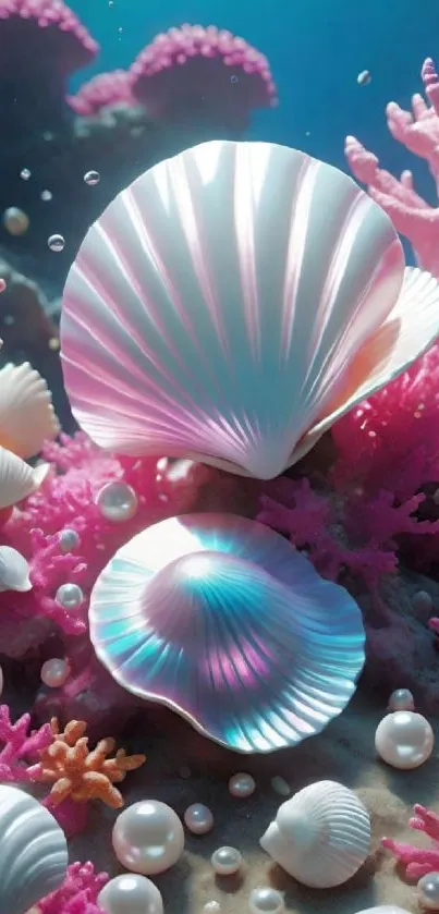 Experience an enchanting underwater realm with vibrant shells and corals perfect for your mobile wallpaper, creating a serene and captivating digital backdrop filled with marine beauty