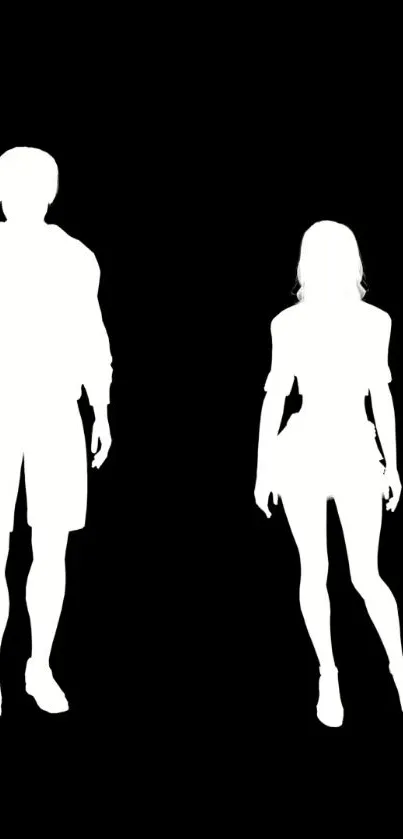 Explore a striking black and white wallpaper featuring silhouette figures, perfect for a sleek mobile background. Enhance your phone's aesthetic with this minimalist and artistic design, great for any modern style