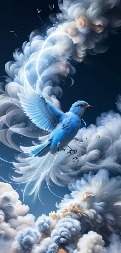 Discover a stunning blue bird soaring amidst swirling clouds in this fantasy mobile wallpaper. Perfect for nature and art enthusiasts, this design features vibrant colors and dynamic movement, creating an inspiring background for your device