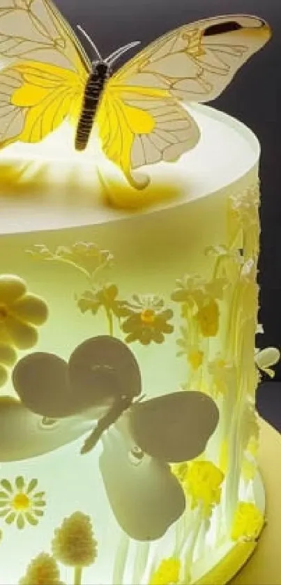 Explore the charm of butterfly and floral cake art with this elegant yellow-themed mobile wallpaper, perfect for those who love a touch of nature and sweetness on their screen
