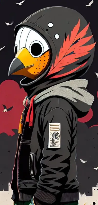 Download a dynamic anime bird character wallpaper featuring bold colors and unique design