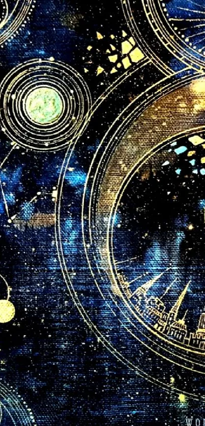 Explore an enchanting mobile wallpaper featuring celestial gold and deep blue designs, perfect for a mystical touch on your smartphone display
