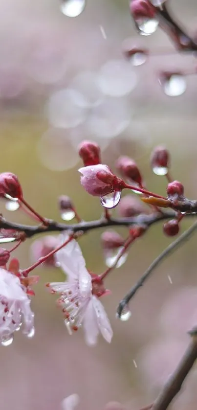 Download this stunning cherry blossom mobile wallpaper, featuring delicate pink petals and water droplets, perfect for nature lovers seeking a serene and elegant phone background