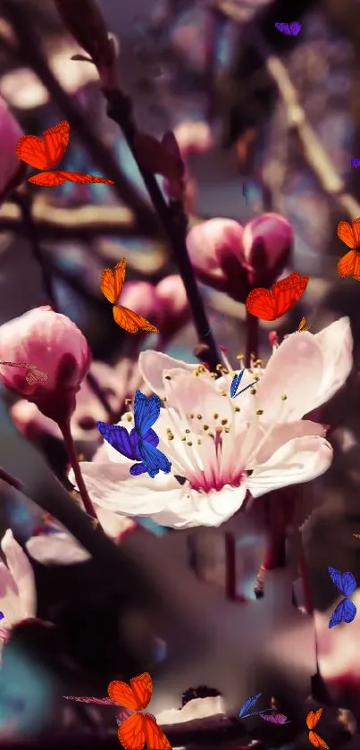 Immerse in the beauty of cherry blossom trees with this stunning springtime floral mobile wallpaper, perfect for nature lovers