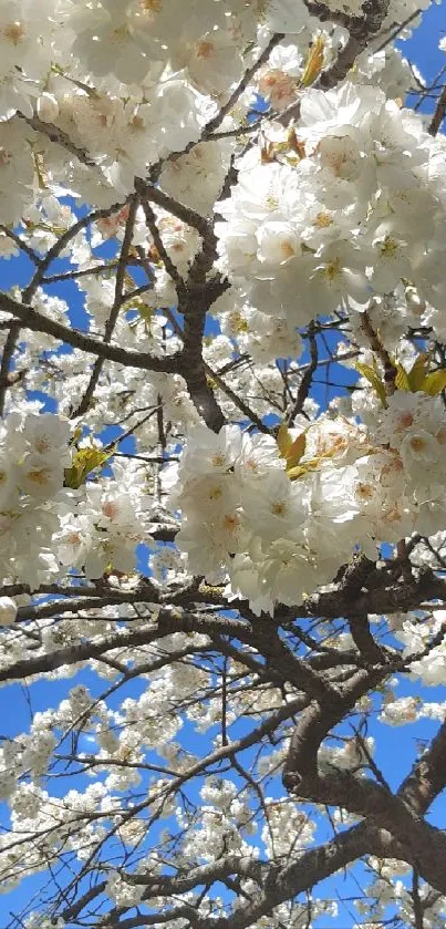 Experience the serene beauty of cherry blossoms against a vibrant blue spring sky with this enchanting mobile wallpaper, perfect for nature lovers. Enjoy the gentle contrast of white blooms and deep blue, providing a peaceful and refreshing visual experience on your phone