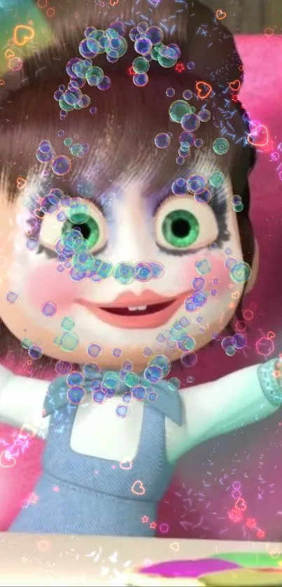 Vibrant cartoon wallpaper featuring a joyful character painting with colorful bubbles floating around, perfect for adding a playful and artistic touch to your mobile screen