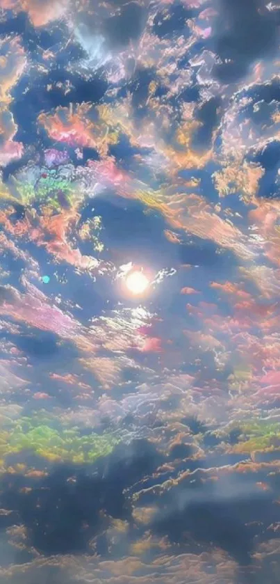 Experience a mesmerizing sky filled with colorful clouds and vibrant hues, perfect for a charming and calming mobile wallpaper