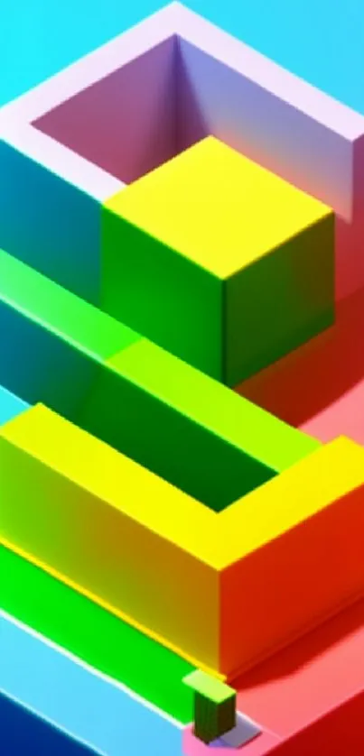 Brighten your screen with this vibrant geometric mobile phone wallpaper, featuring a dynamic blend of blue, green, yellow, and red hues, designed to offer an eye-catching, modern aesthetic