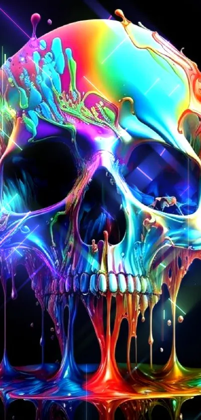 Vibrant and surreal mobile wallpaper featuring a colorful melting skull, perfect for edgy and artistic backgrounds
