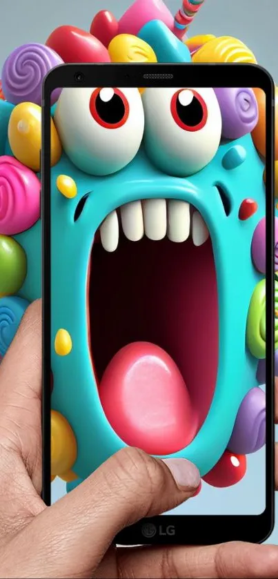 Discover a fun and vibrant mobile wallpaper featuring a colorful cartoon monster bursting with excitement, perfect for adding some playful energy to your smartphone screen