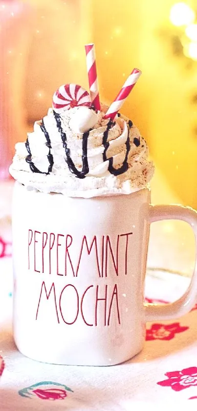 Embrace the holiday spirit with a cozy mobile wallpaper featuring festive peppermint mocha and vanilla whipped cream treats, perfect for adding warmth to your screen