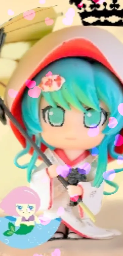 Discover this adorable anime figure with vibrant turquoise hair in a whimsical illustration. Ideal for adding a splash of color and charm to your device. Perfect for anime lovers seeking unique and playful mobile wallpapers