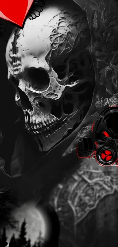 This striking mobile wallpaper features a dark, gothic skull design with haunting details, perfect for fans of eerie, atmospheric art