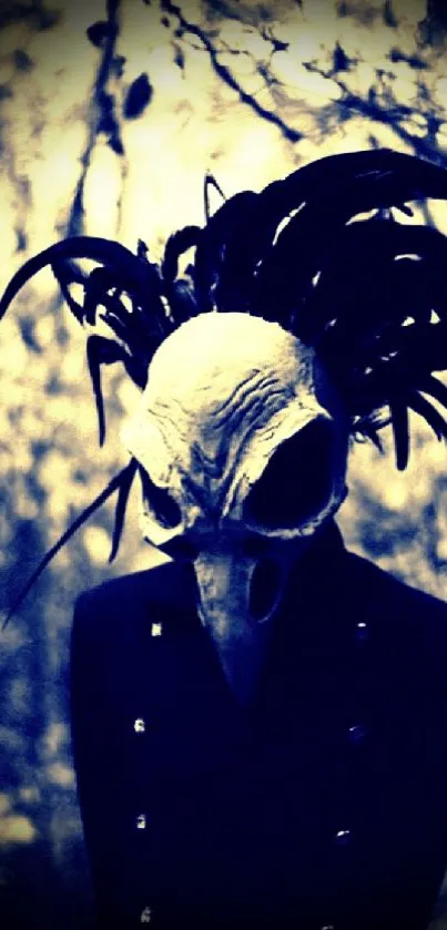 Explore the dark, mysterious forest with this captivating mobile phone wallpaper featuring an enigmatic figure in a surreal setting. Perfect for those fascinated by eerie and atmospheric designs