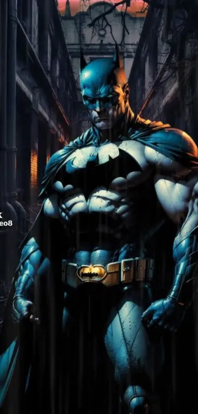 Explore a dark alley with this intense superhero wallpaper, capturing the mysterious ambiance