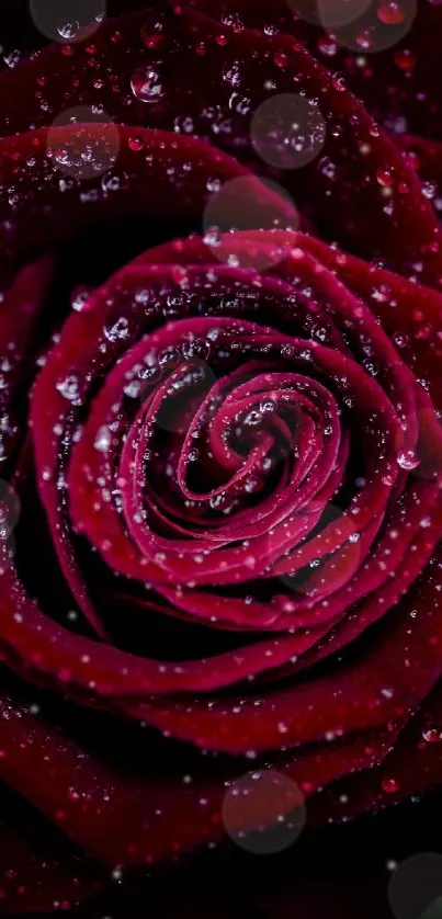 Enhance your screen with a captivating close-up of a deep red rose adorned with dewdrops, perfect for nature enthusiasts and romantic themes. This high-resolution wallpaper brings a touch of elegance and natural beauty to your mobile device