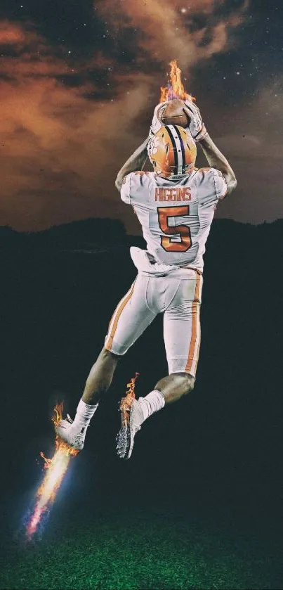 Elevate your phone's screen with a dynamic football player wallpaper featuring a dramatic night sky