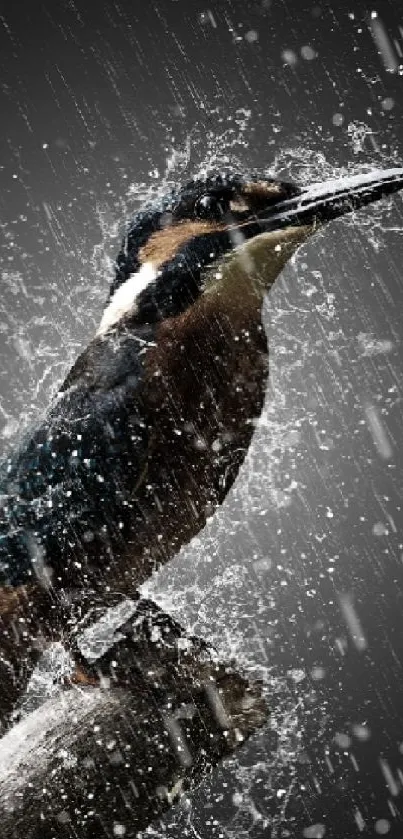 Experience the elegance of nature with this dynamic kingfisher wallpaper, showcasing the bird's striking colors and water splash effect on a sleek black background, perfect for enhancing any mobile screen