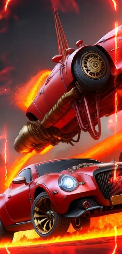 Experience the thrill with this dynamic and fiery red car mobile wallpaper, showcasing speed and intensity with a stunning visual of sleek vehicles and vibrant flames