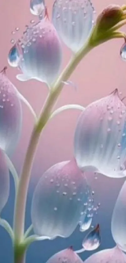 Download this elegant 'Good Morning' mobile wallpaper featuring dew-kissed lilies of the valley on a soft gradient background, perfect for a refreshing start to your day
