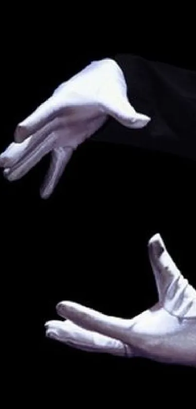 Discover the elegance of two hands wearing white gloves gracefully posed against a black backdrop, perfect for a sophisticated mobile wallpaper