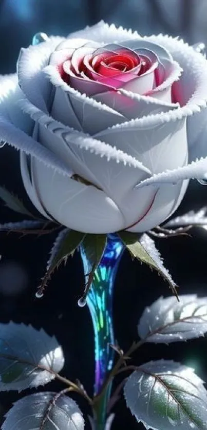 Discover the serene elegance of a white rose with dewdrops, perfect for adding a touch of nature's beauty to your mobile phone screen. This stunning floral wallpaper captures the purity and grace of a blooming rose elegantly set against a soft-focus background