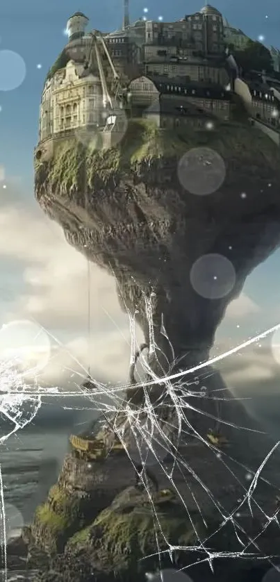 Explore a mesmerizing fantasy wallpaper featuring a floating island landscape, a unique blend of nature and imagination perfect for mobile backgrounds