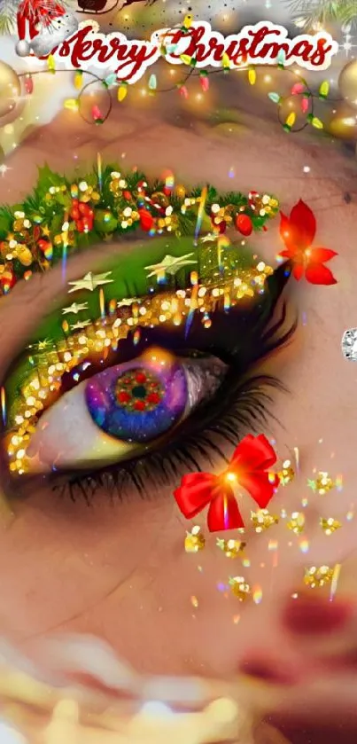 Immerse your device in festive spirit with this Christmas-themed eye art wallpaper, featuring vibrant colors and decorative elements