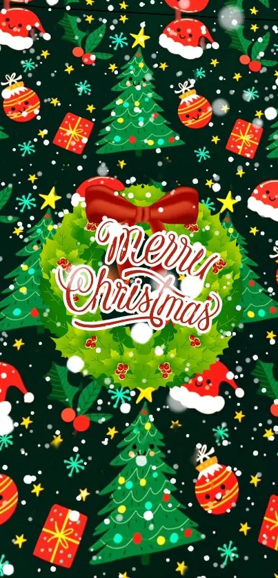 Download this vibrant Christmas-themed mobile wallpaper featuring trees, Santa hats, gifts, and ornaments, creating a festive and joyful atmosphere to brighten your phone screen during the holiday season. Perfect for adding a touch of celebration and cheer to your device