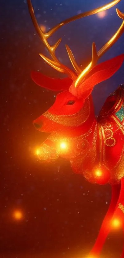 Explore this vibrant, festive reindeer art wallpaper for your mobile, featuring glowing red and gold hues, ideal for holiday seasons and captivating decoration inspiration