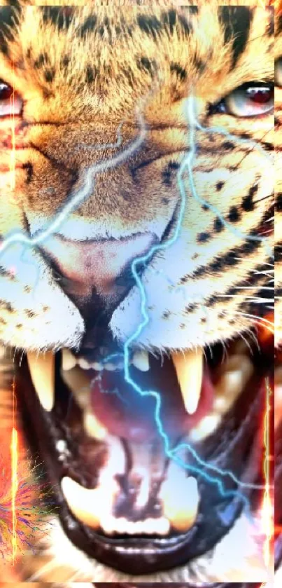 Fierce Leopard Lightning Wallpaper