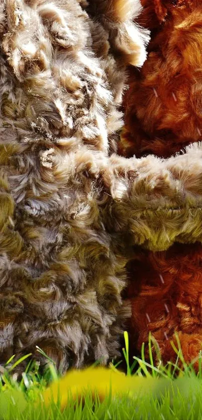 Enhance your mobile screen with this cozy furry duo wallpaper, featuring a blend of warm, vibrant colors and intricate textures, perfect for animal and nature lovers seeking a whimsical touch