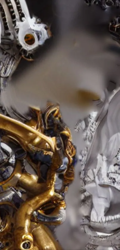Explore a futuristic abstract art wallpaper featuring metallic and golden textures, perfect for modern mobile devices