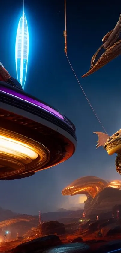 Immerse yourself in this stunning sci-fi wallpaper depicting a futuristic alien landscape with vibrant colors and intricate details, perfect for mobile screens