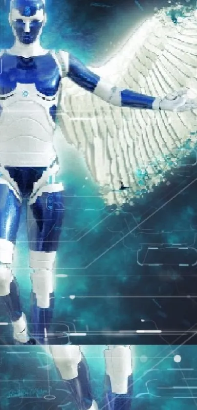 Explore a mesmerizing mobile wallpaper featuring an angelic robot in a digital galaxy, combining futuristic technology with artistic flair. Ideal for tech enthusiasts and art lovers alike, this stunning image embodies innovation and creativity