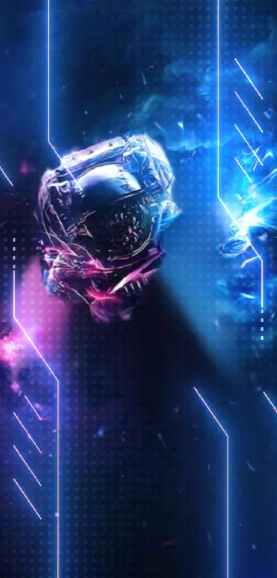 Explore the cosmos with this stunning wallpaper featuring an astronaut amidst vibrant blue and pink hues, perfect for tech enthusiasts and space lovers seeking a dynamic mobile background