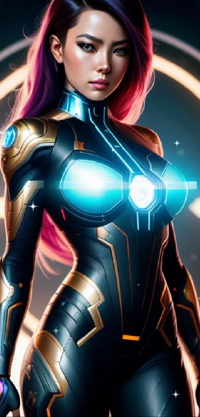 Download this stunning cyberpunk warrior wallpaper featuring futuristic armor and neon accents. Perfect for adding a sci-fi touch to your mobile screen