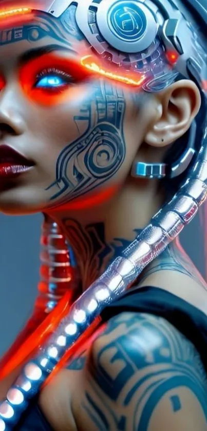 Explore this vibrant cyberpunk artwork featuring a neon-enhanced futuristic woman's portrait, perfect for tech enthusiasts
