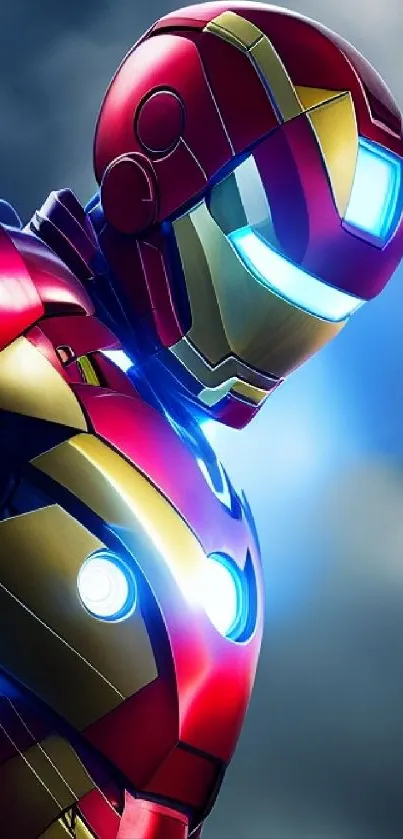 Download this stunning Iron-Man mobile wallpaper featuring a vibrant red and gold armor with glowing blue highlights, perfect for superhero fans and tech enthusiasts who appreciate dynamic, high-quality design on their devices