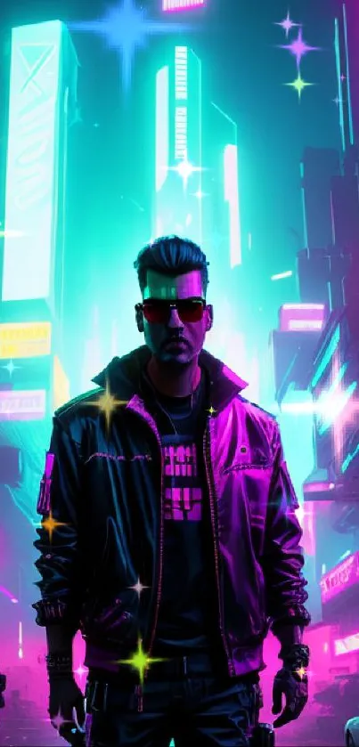 Immerse in a vivid sci-fi cityscape with this cyberpunk-themed mobile wallpaper featuring vibrant neon lights and futuristic ambiance