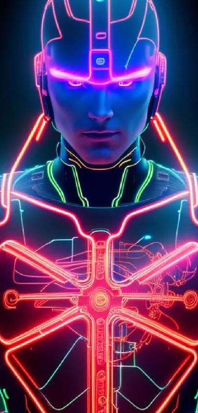 Discover a vibrant futuristic mobile wallpaper featuring a neon-lit cyber warrior, perfect for tech enthusiasts seeking a cutting-edge design for their screens