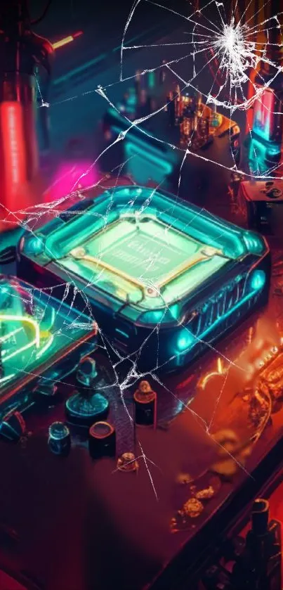 Explore a vibrant futuristic world with this neon tech-themed mobile wallpaper, featuring neon lights, glowing gadgets, and a sci-fi aesthetic perfect for technology enthusiasts