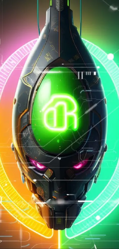 Explore a captivating futuristic mobile wallpaper featuring a neon-lit tech face design with vibrant colors. Ideal for tech enthusiasts