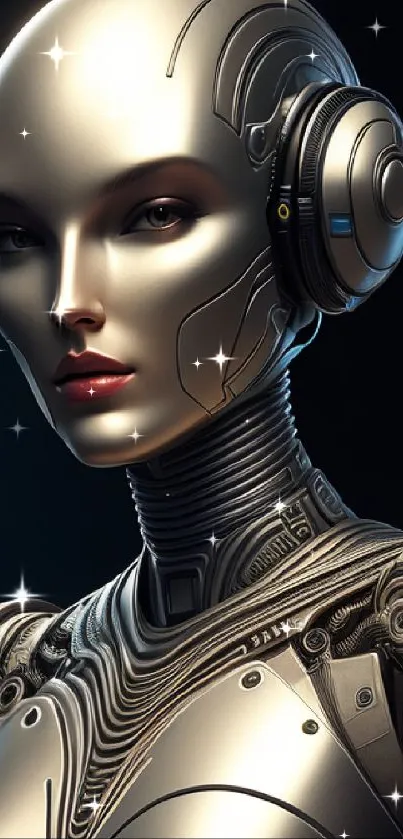 Discover a stunning futuristic robot portrait in this mobile wallpaper, ideal for tech enthusiasts seeking a unique, high-tech aesthetic
